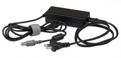 - Power cable plugged into the computer and a wall outlet